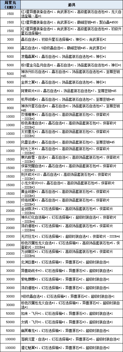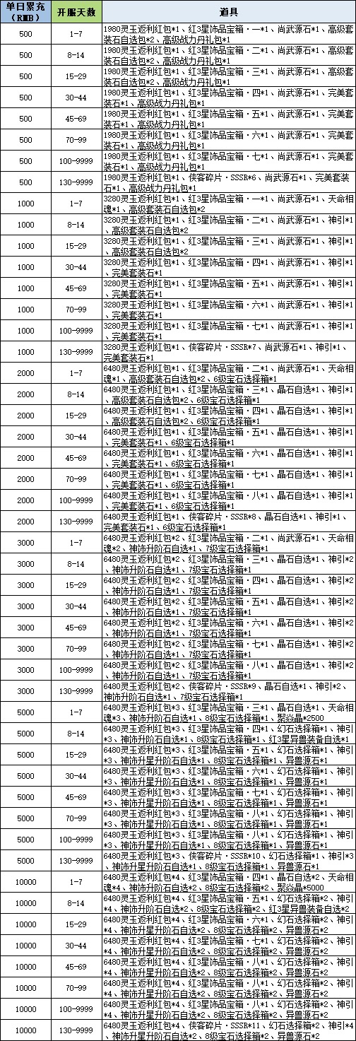 活动达成条件:单角色单日充值10000元以上或者最近7日累充15000以上